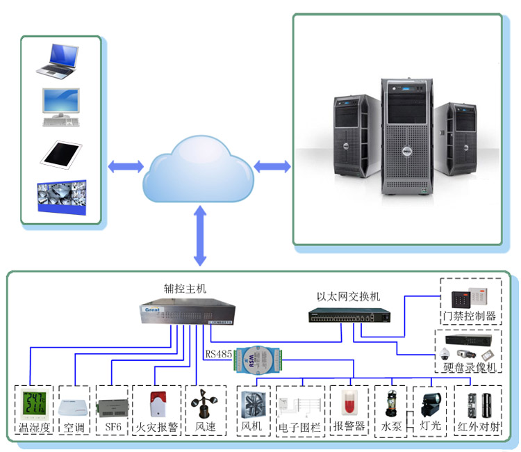 本系統(tǒng)通過對各種輔助生產(chǎn)系統(tǒng)的整合、優(yōu)化,并通過監(jiān)測、預(yù)警和控制三種手段,實現(xiàn)智能變電站無人值守下的分布式遠程監(jiān)管,為變電站的科學(xué)管理和安全生產(chǎn)提供可靠的技術(shù)保障。