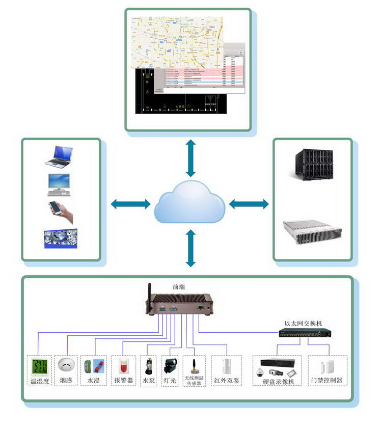 - 集成環(huán)境、煙火、門磁、入侵、水浸等子系統(tǒng),實現(xiàn)實時信息綜合展示,綜合告警,綜合查詢。
